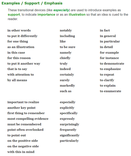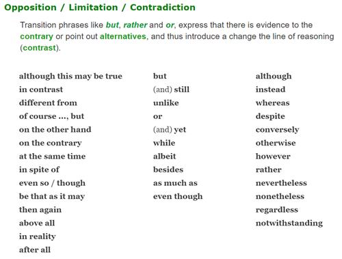 English transition words are essential, since they not only connect ideas, but also can introduce a certain shift, contrast or opposition, emphasis or agreement, purpose, result or conclusion, etc. in the line of argument. (Courtesy of: https://www.smart-words.org/linking-words/transition-words.html)